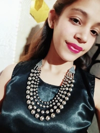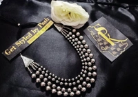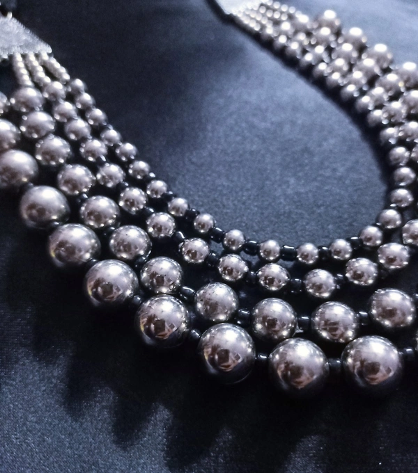 Dazzling beaded necklace in silver and black color is perfect neckpiece to go with any outfit.Complete your beautiful looks with this necklace set and get an overall gorgeous appearance. Wear it on special occasion and amaze everyone with your looks.This necklace set is a perfect combination of traditional & contemporary design. Suitable for all Kinds of Dressy Occasions. Jewellery adds Lavishing look to any clothing. Any fabulous outfit is incomplete without matching jewellery. A woman is completely dressed with wearing matching jewellery.