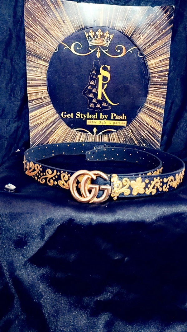 Black Gold Liquid Embroidered Antique Luxury Belt