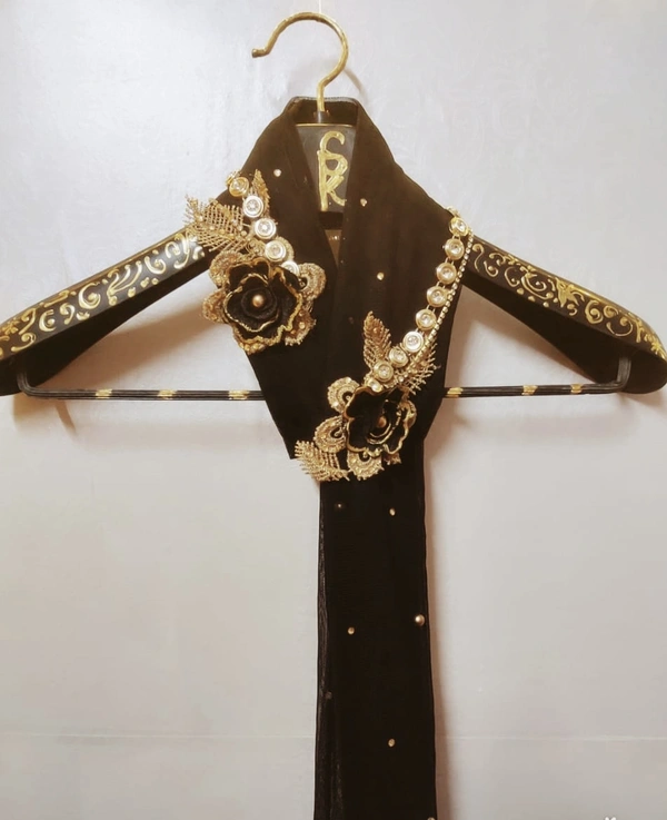 Gold Flowers and Sarwoski Embellished Long Scarf