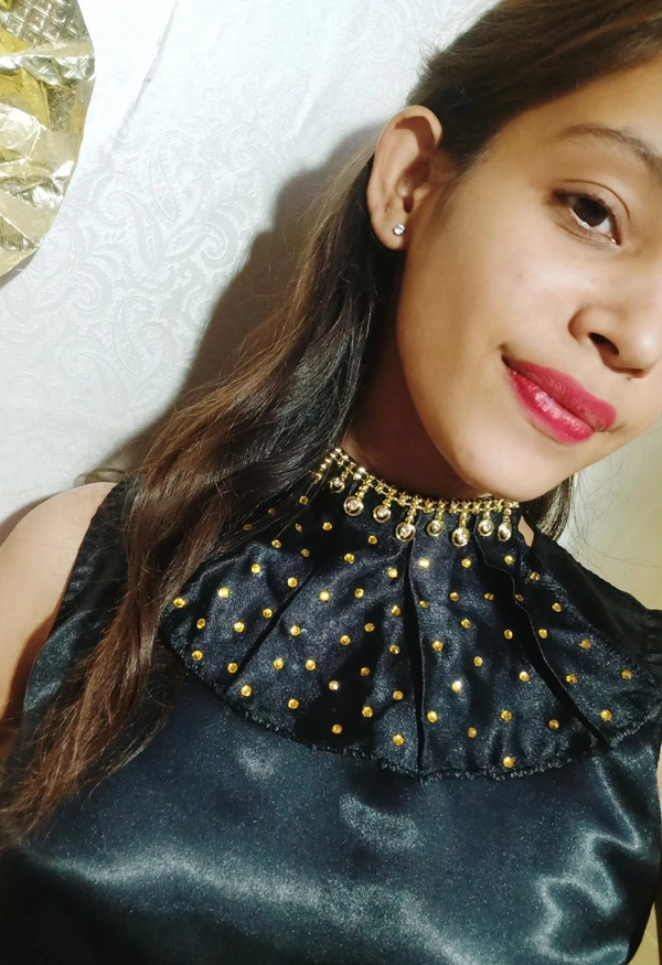Gold Sarwoski Embellished Short Ruff Fashion collar