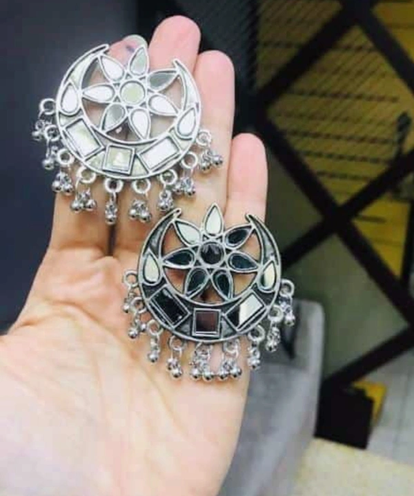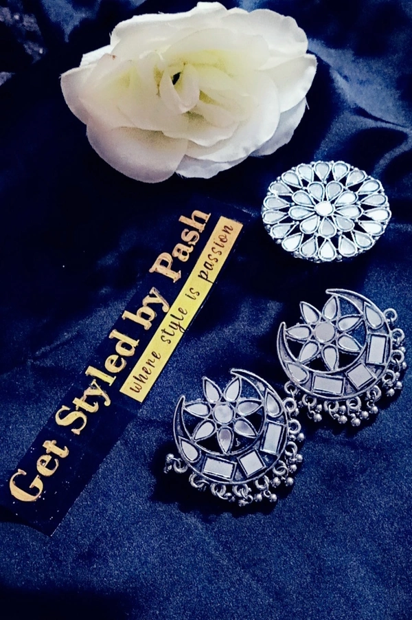 Mirror Embellished Chandballis With Mirror Studded Ring