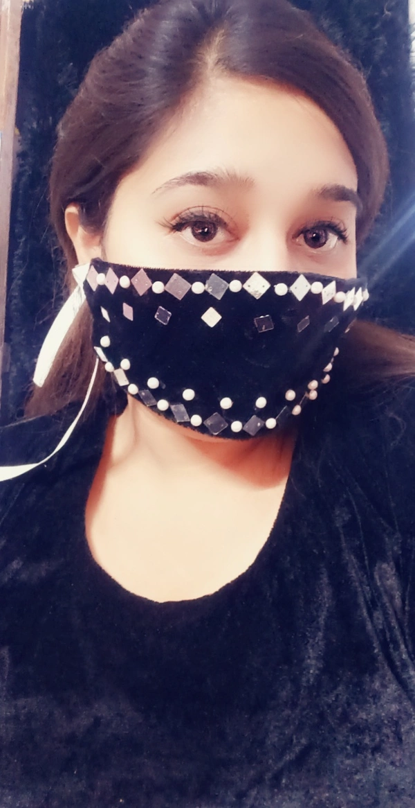 Pearl And Silver Work Embellished Spk fashion Luxury Mask