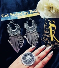 MATERIAL : The metal is alloy with Oxidised German silver plating that gives a dull, yet classy finish to the set. The German silver plating used when combined with the design gives a uniquely traditional look to the jewelry set. The metal is strong and longlasting.