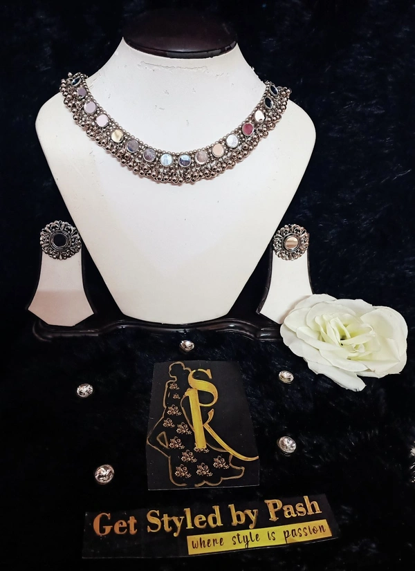 MATERIAL : The metal is alloy with Oxidised German silver plating that gives a dull, yet classy finish to the set. The German silver plating used when combined with the design gives a uniquely traditional look to the jewelry set. The metal is strong and longlasting.