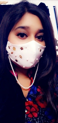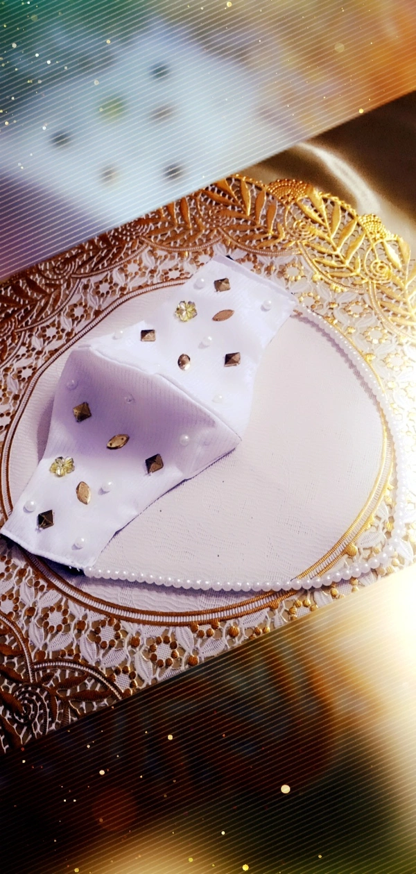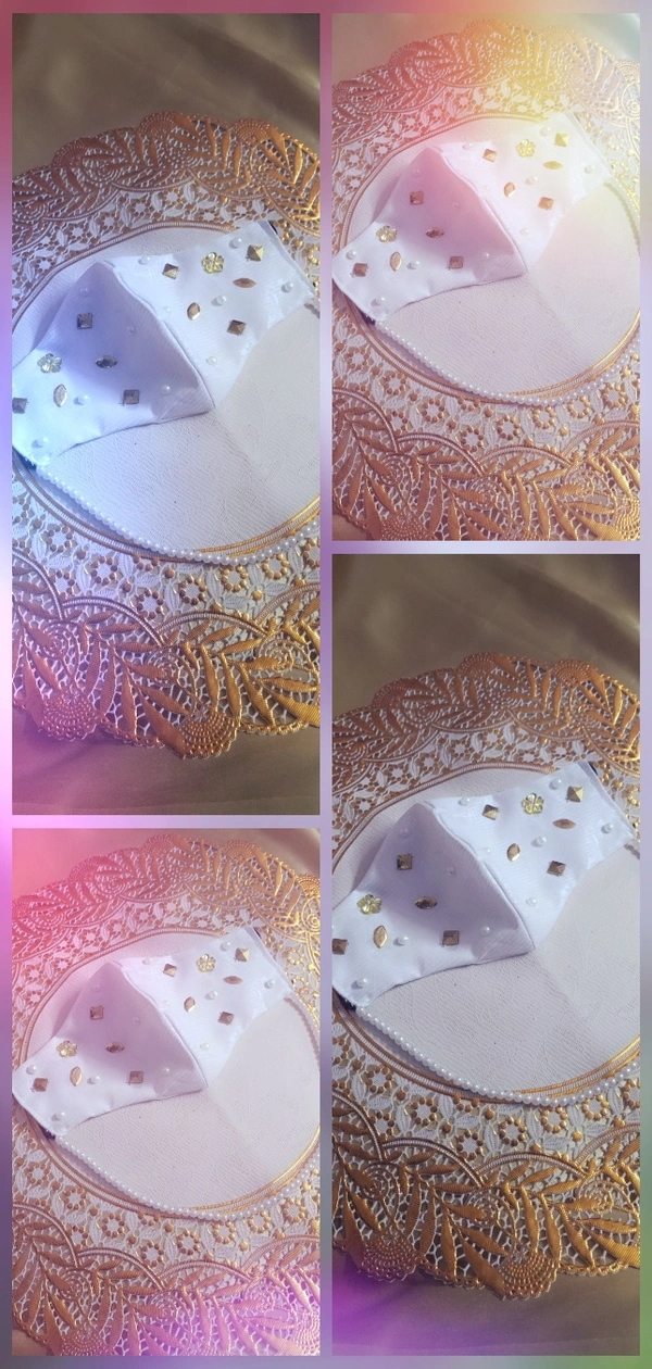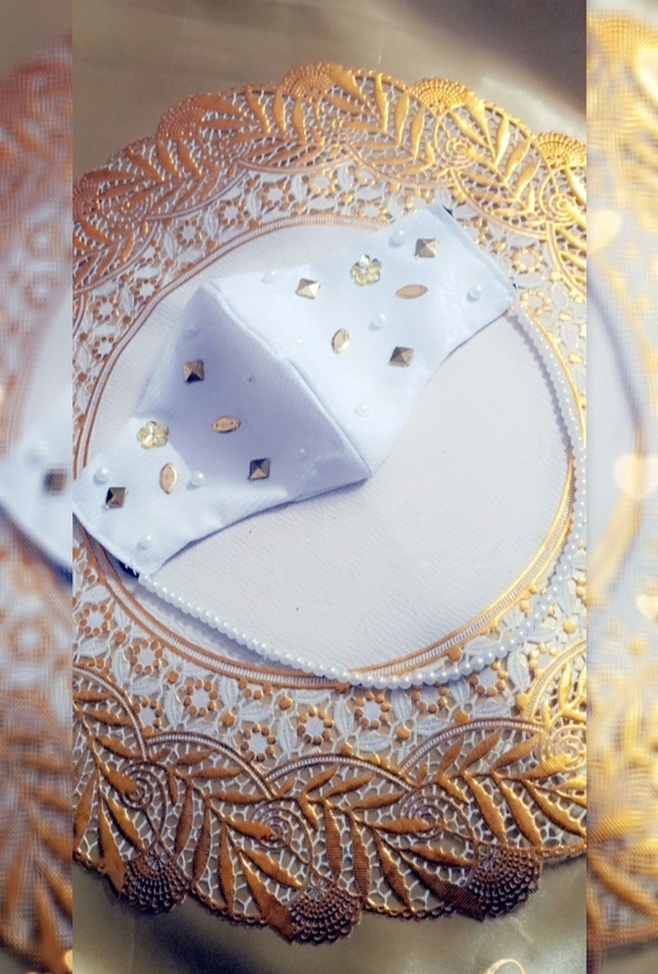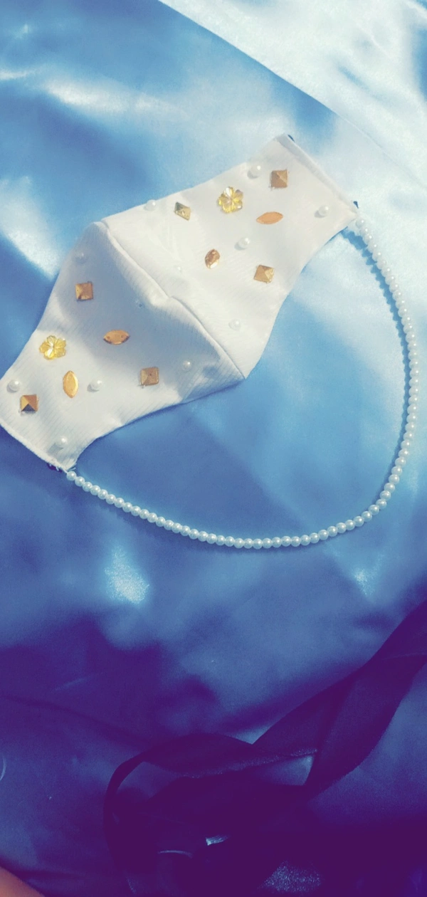 Spk "Pearl Embellished luxury cotton silk pearl chained mask"