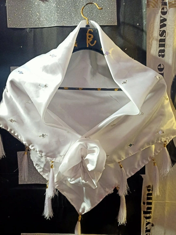 White Dazzling Satin Silk Shoulder Wrap Cape